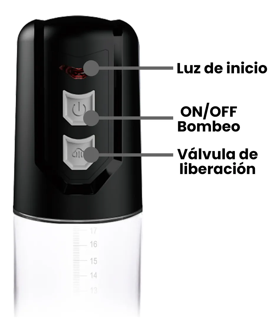 Potencia tu desempeño íntimo con esta bomba de pene eléctrica recargable. Su sistema de vacío automático ofrece succión uniforme y constante, estimulando el flujo sanguíneo para erecciones más firmes, duraderas y mayor tamaño.